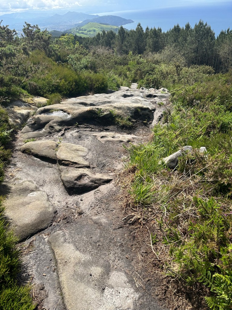 The views were fantastic. To the north was the Cantabrian Sea and to the south were the highland and Cantabrian mountains. There were horses, cows, goats and sheep grazing at the higher altitudes. The trail was muddy and wet, often just a puzzle through large rocks. It went up forever and descended forever!