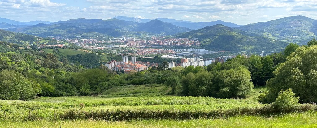 From Gernika, Peter and I had planned to walk to Lezama but could not secure accommodation. We thought we would walk to Lezama and then grab a bus or train into Bilbao. We walked past Lezama and had lunch in Zamudio. Refreshed, we decided to continue on to Bilbao. It turned into a 21-mile trek. Since we arrived a day earlier than planned, we will take a break day tomorrow and visit the city. It will be nice to walk around without carrying a horse on my shoulders.