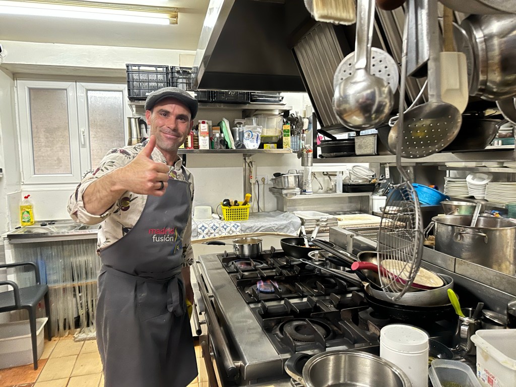El jefe Julián preparing to create in his kitchen. He gets fresh fish from the docks every morning, meat from a farmer friend and grows much of his own veggies and herbs. He presented me and the Scots with scallop shells. That was two shells in one day for me!