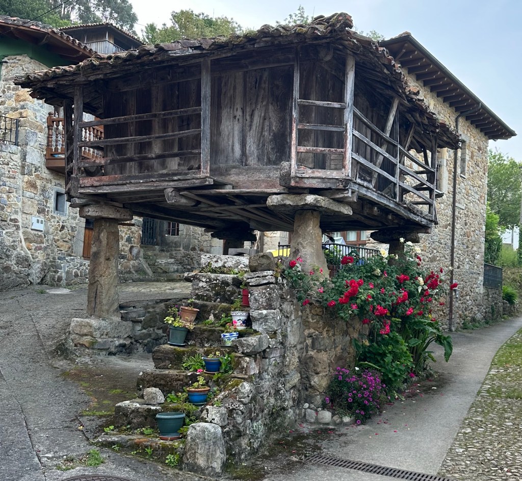 By the way, and Lisa will be interested in this, I have been seeing a lot of hórreos since entering Asturias. We saw a lot of them in Galicia last year. Most are very old structures but here in Asturias there are a lot of new ones. They were originally designed to hold grain and other crops and keep the varmints out. You can see the flat rocks on top of the legs which little critters cannot negotiate. Now, it looks like they are used for other purposes, including grandmas house.