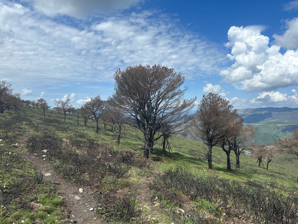 There were some forest fires last April that swept through the area I passed through today, as attested to by a lot of black trees. However, the vegetation is coming back and the locals expect the trees will too.