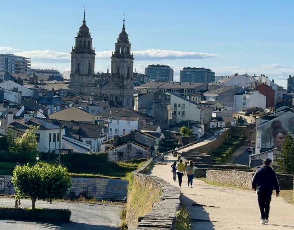 Lugo was originally a Celtic village but after Roman armies invaded the Spanish peninsula to dislodge the Carthaginians, they established a stronghold in Lugo to control the gold mines on the south of the Cantabrian mountains. The Roman defensive wall which still surrounds the city was built in the 3rd century and is a UNESCO World Heritage site. You can walk around the top of the wall which is over 2 km in length. I walked around twice and saw other strollers, dog walkers and joggers. Gonna kill my daily average unless I do another 20 laps, but the thunderstorms are going through. Maybe time to head over to Alquimia.
