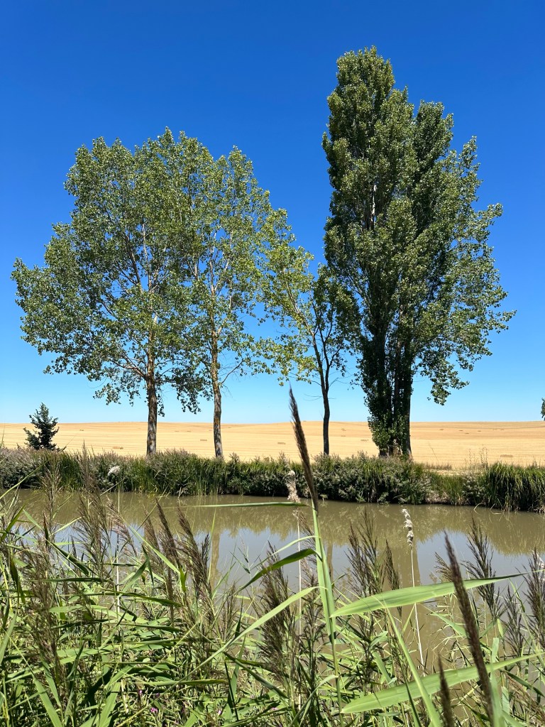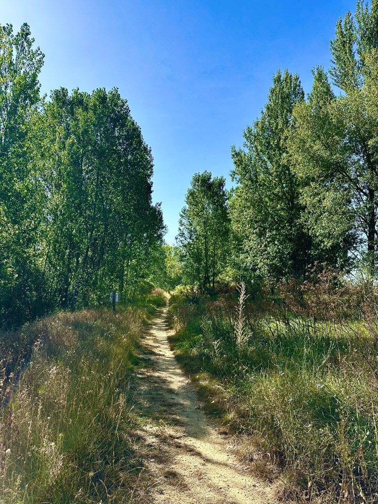 The Pisuerga river broke the monotony of the dry trail as we neared Fromista. The Pisuerga rises in the Cantabrian mountains and it flows into the Duero. A forest of poplars surrounded the river and provided welcome shade.