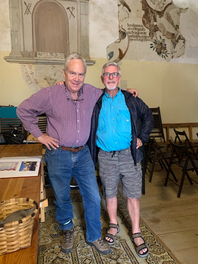 The next day we drove though the Picos de Europa, three limestone massifs that thrust upward within the Cantabrian mountain range, offering stunning views of rugged peaks, alpine valleys and narrow gorges cut by rivers rushing about searching for lower ground. After a fine lunch of fabada asturiana and roasted goat, John expertly drove us along the winding mountain roads back to the coast where we stayed at yet another parador in Santillana del Mar, this one with ample parking. In the morning, we found a coffee bar frequented by peregrinos – Santillana del Mar is located along the Camino del Norte.